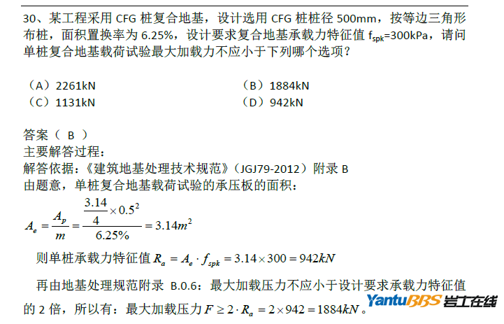 同問(0)已回答這個題目,用的是地基處理規附錄B(復合地基靜載荷試驗要點),B.0.6靜載試驗最大加載壓力不應小于設計要求的承載力特征值2倍。這個設計要求的承載力,到底是指單樁的設計承載力,還是復合地基的承載力?