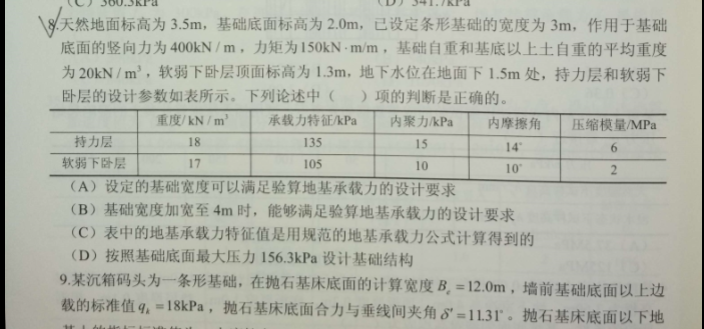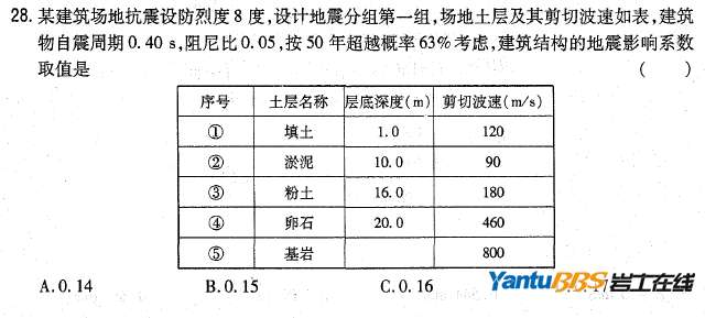 同問(1)已回答對于下面這道題的答題過程,我有兩點疑問: 1)如何定義覆蓋層厚度是16米,而不是20米? 2)這里面只提到是8度,但即使是8度,但題目中沒提說是加速度是0.20g還是0.30g,那如何定義是amax是0.16而不是0.24?